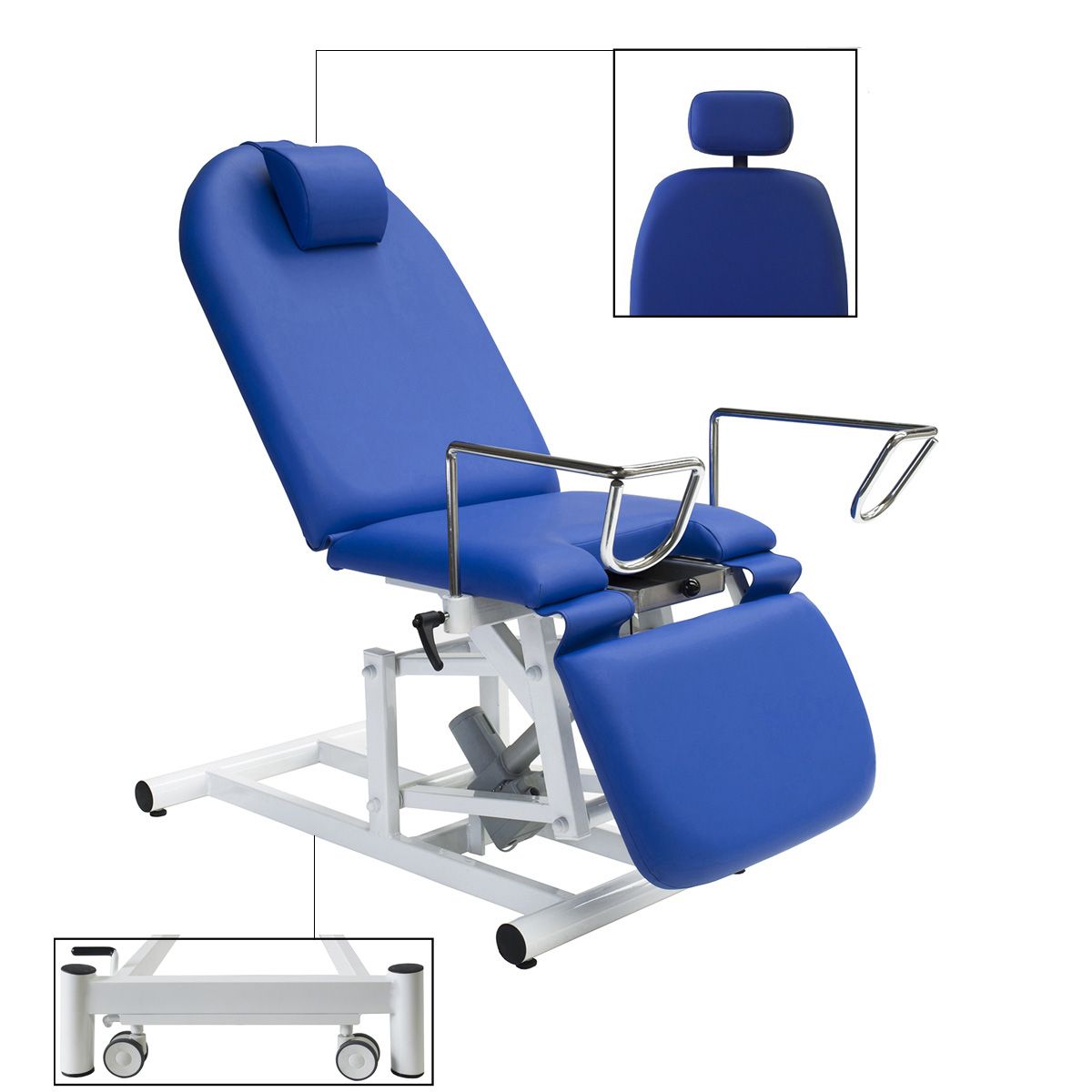 Dossier réglable +85º -10º, jambes +15º -90º par vérin à gaz.