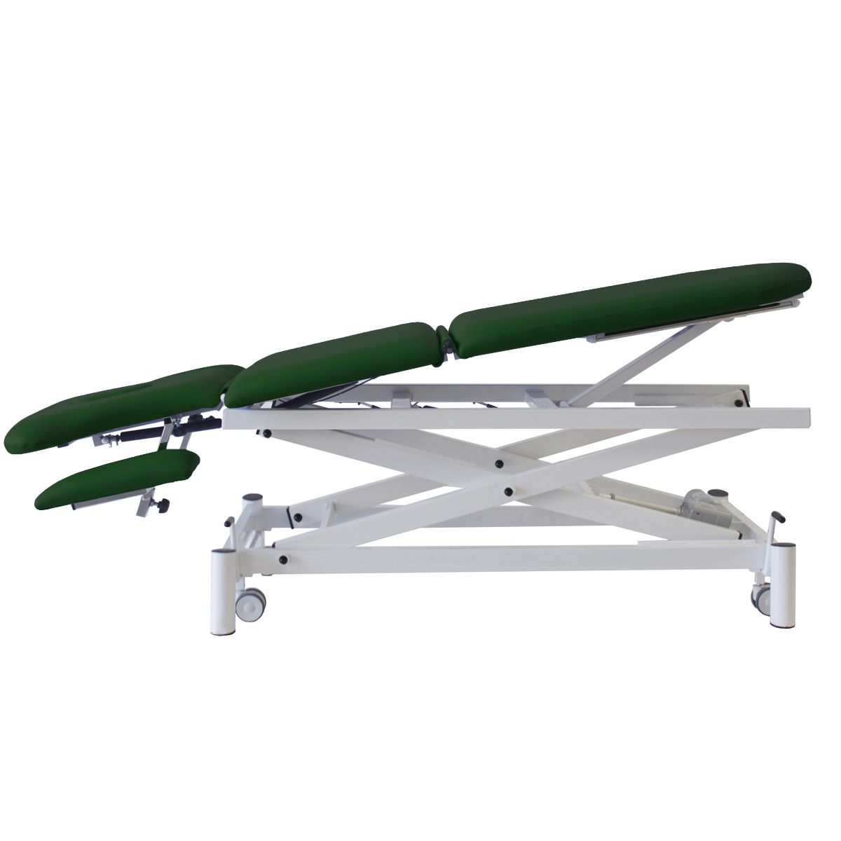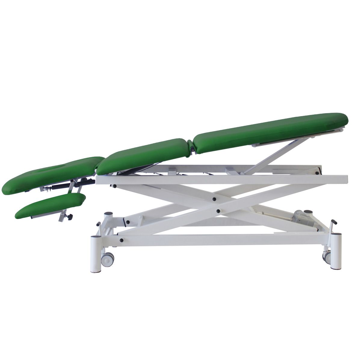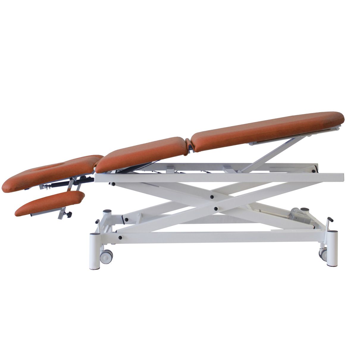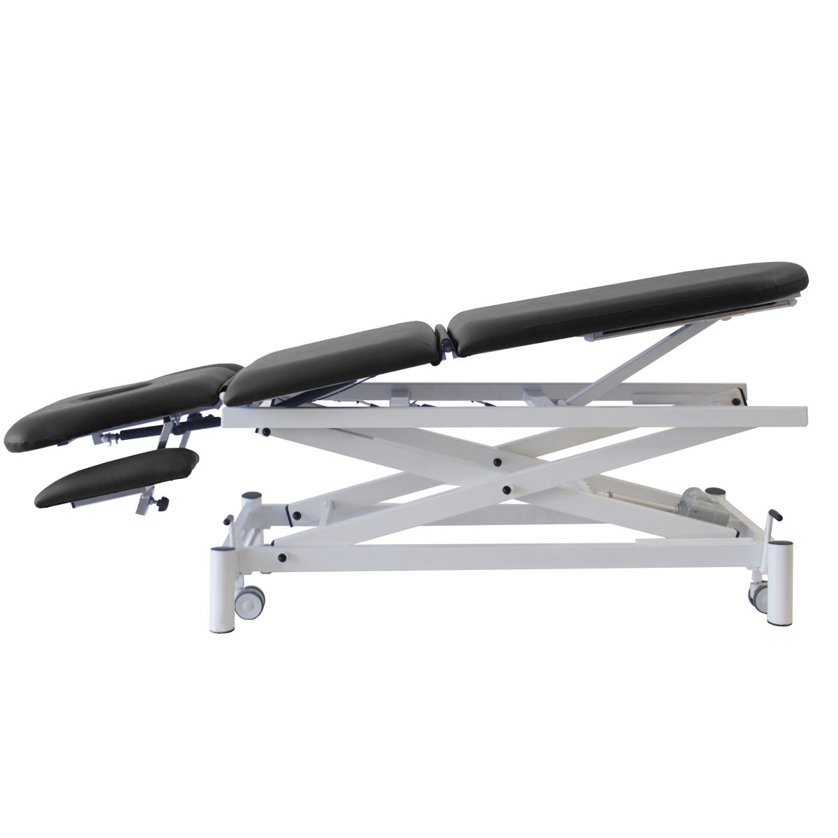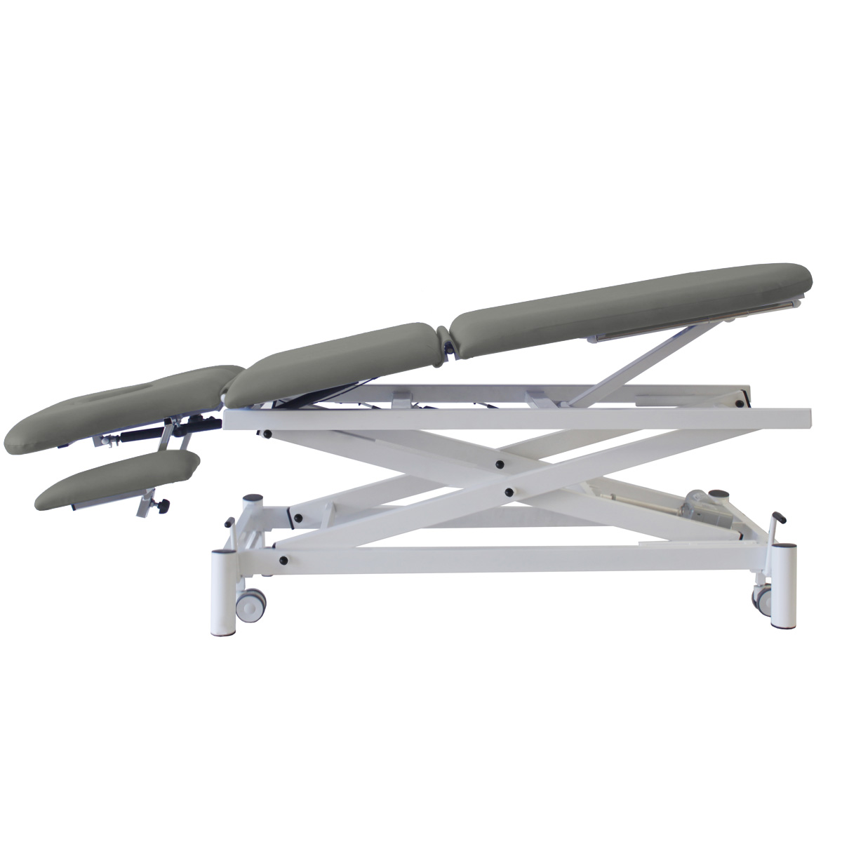 Dossier réglable +50º-40º, zone lombaire +20º, zone jambes+75º par vérin à gaz.
