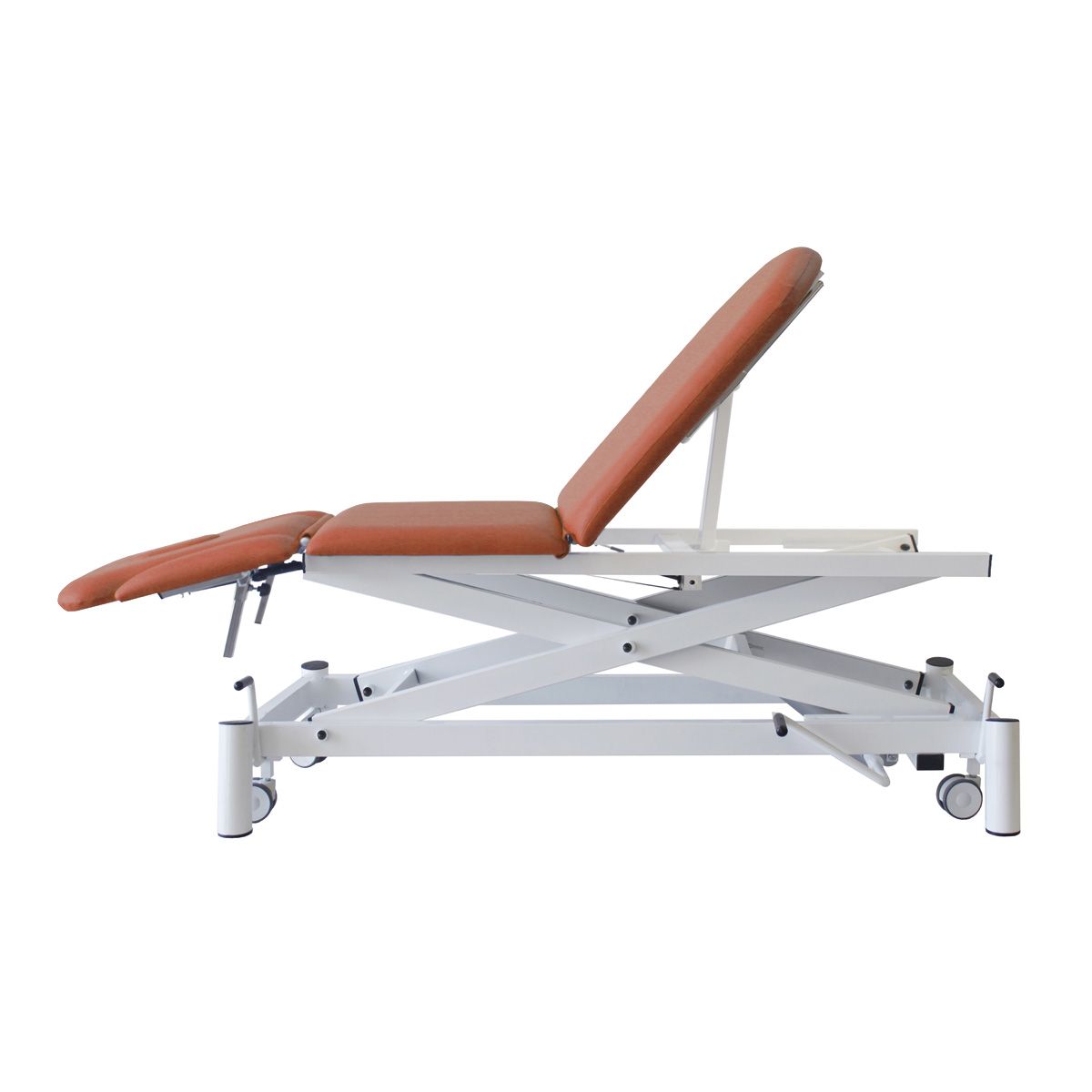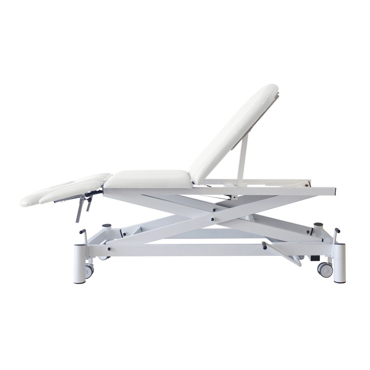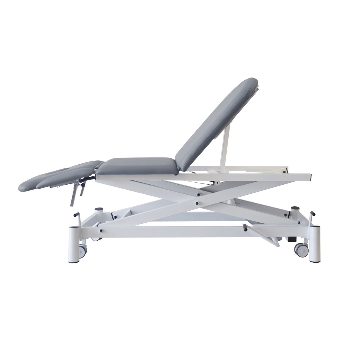 Dossier réglable +50º-40º, zone lombaire +20º, zone jambes+75º par vérin à gaz.