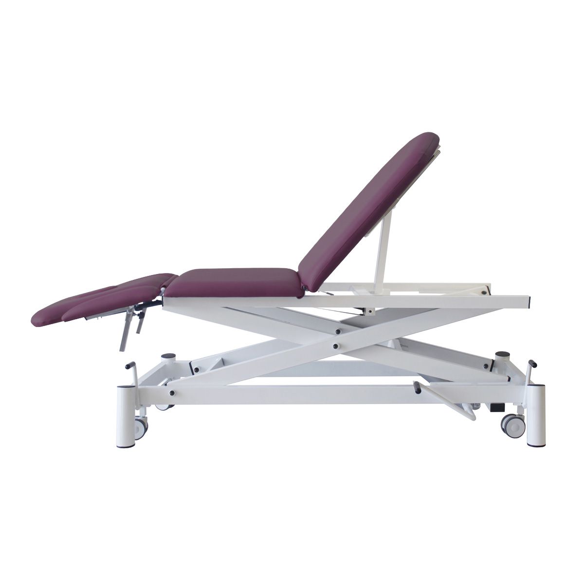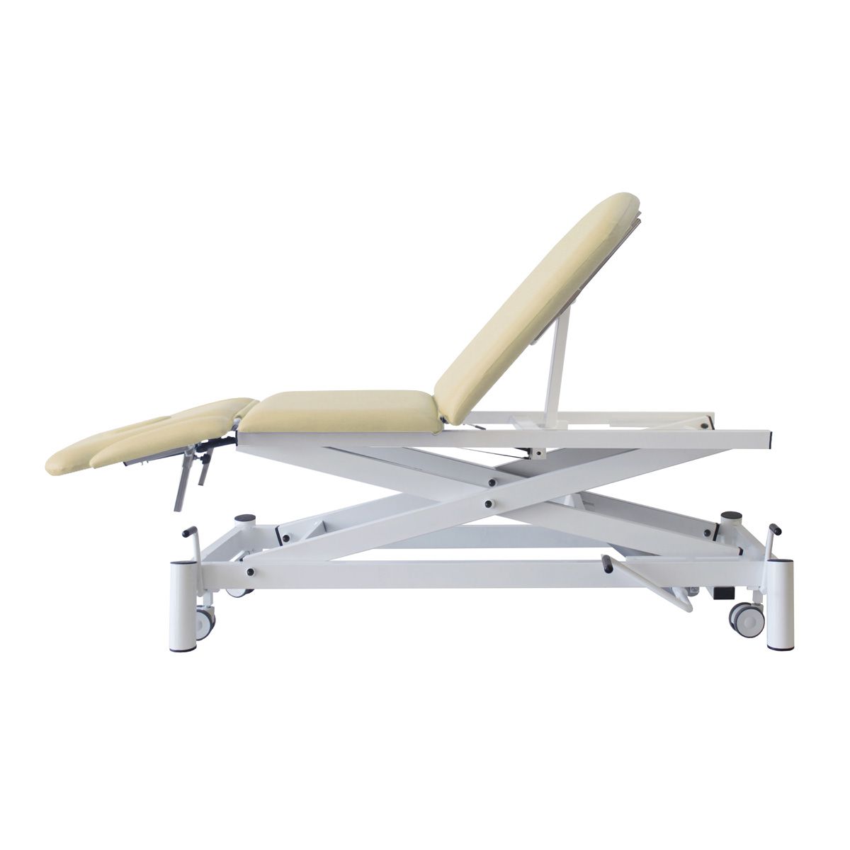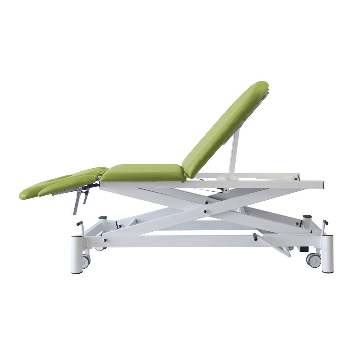 Dossier réglable +50º-40º, zone lombaire +20º, zone jambes+75º par vérin à gaz.