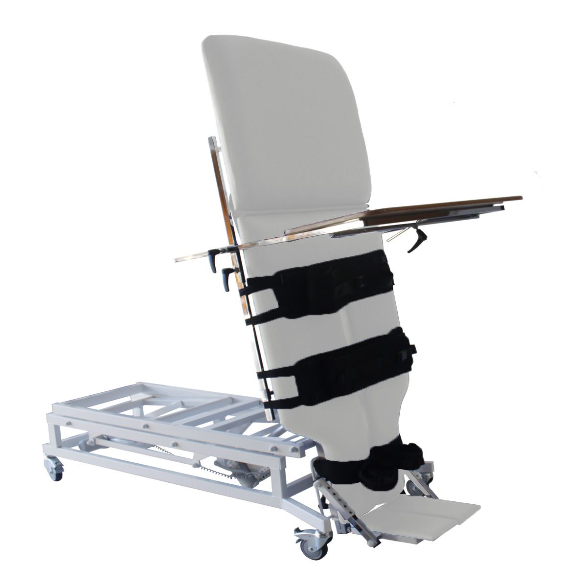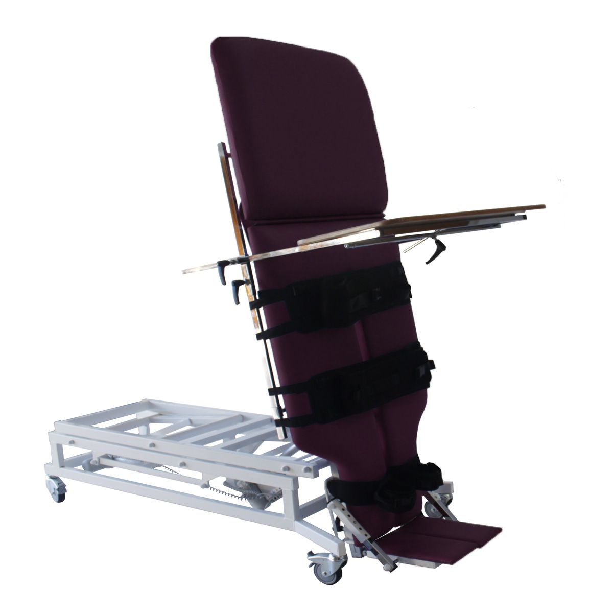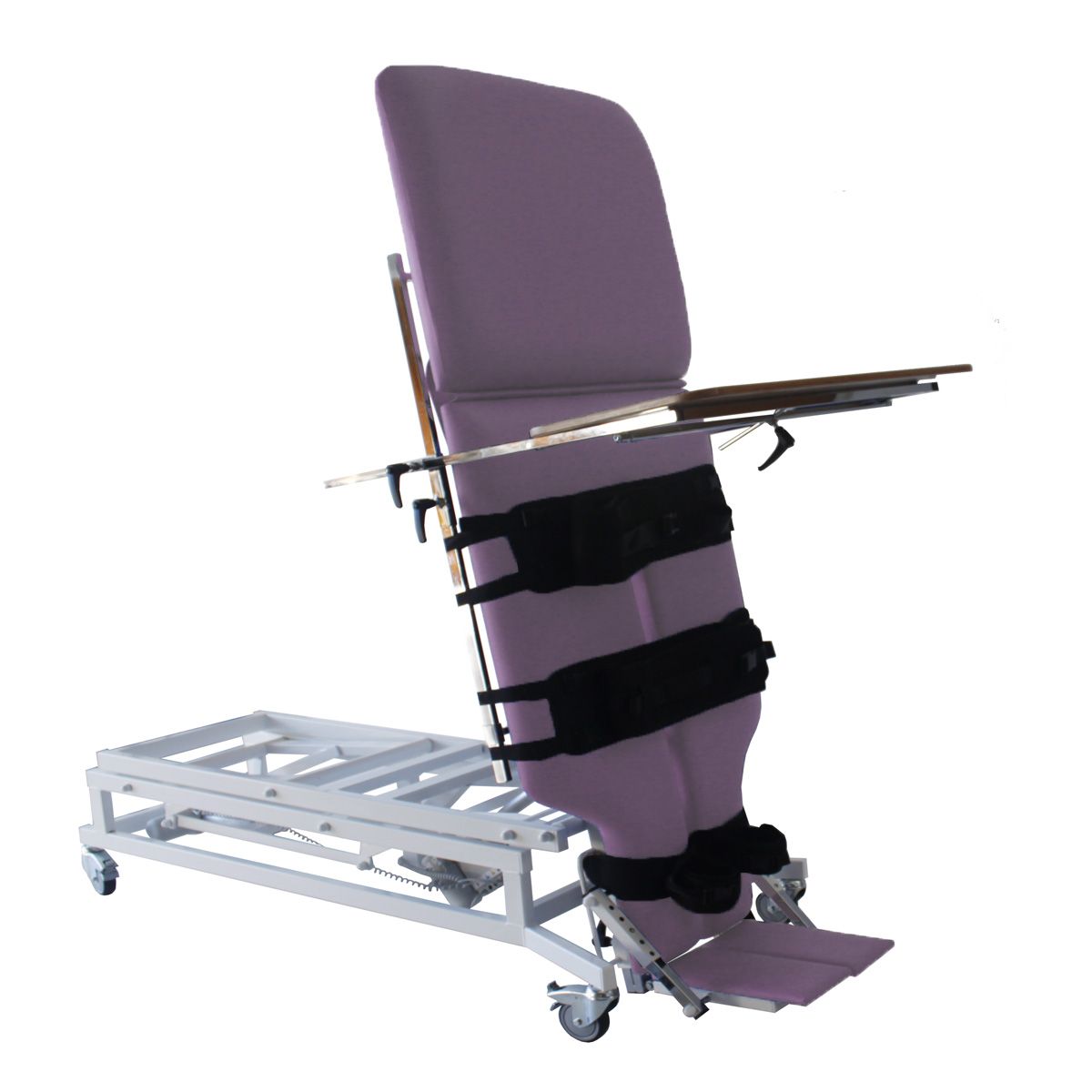 Table à hauteur réglable et plan verticalisateur inclinable par moteur.