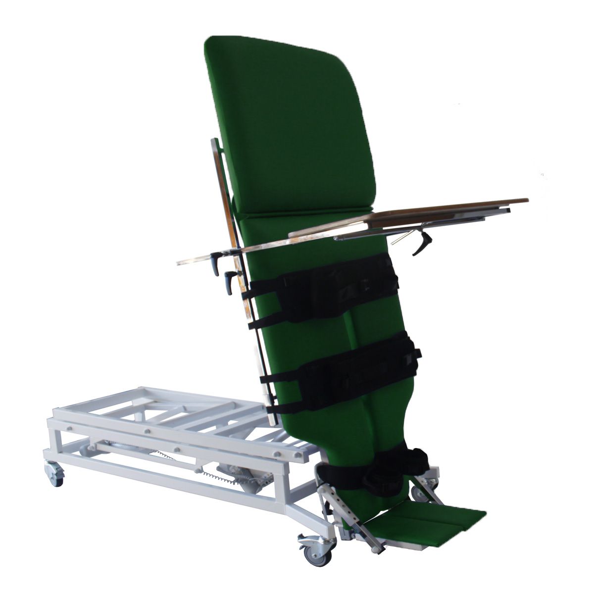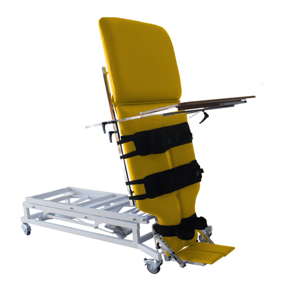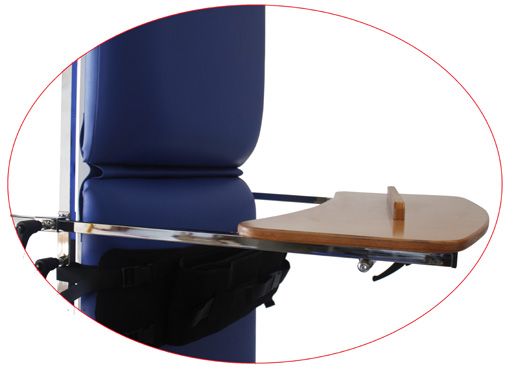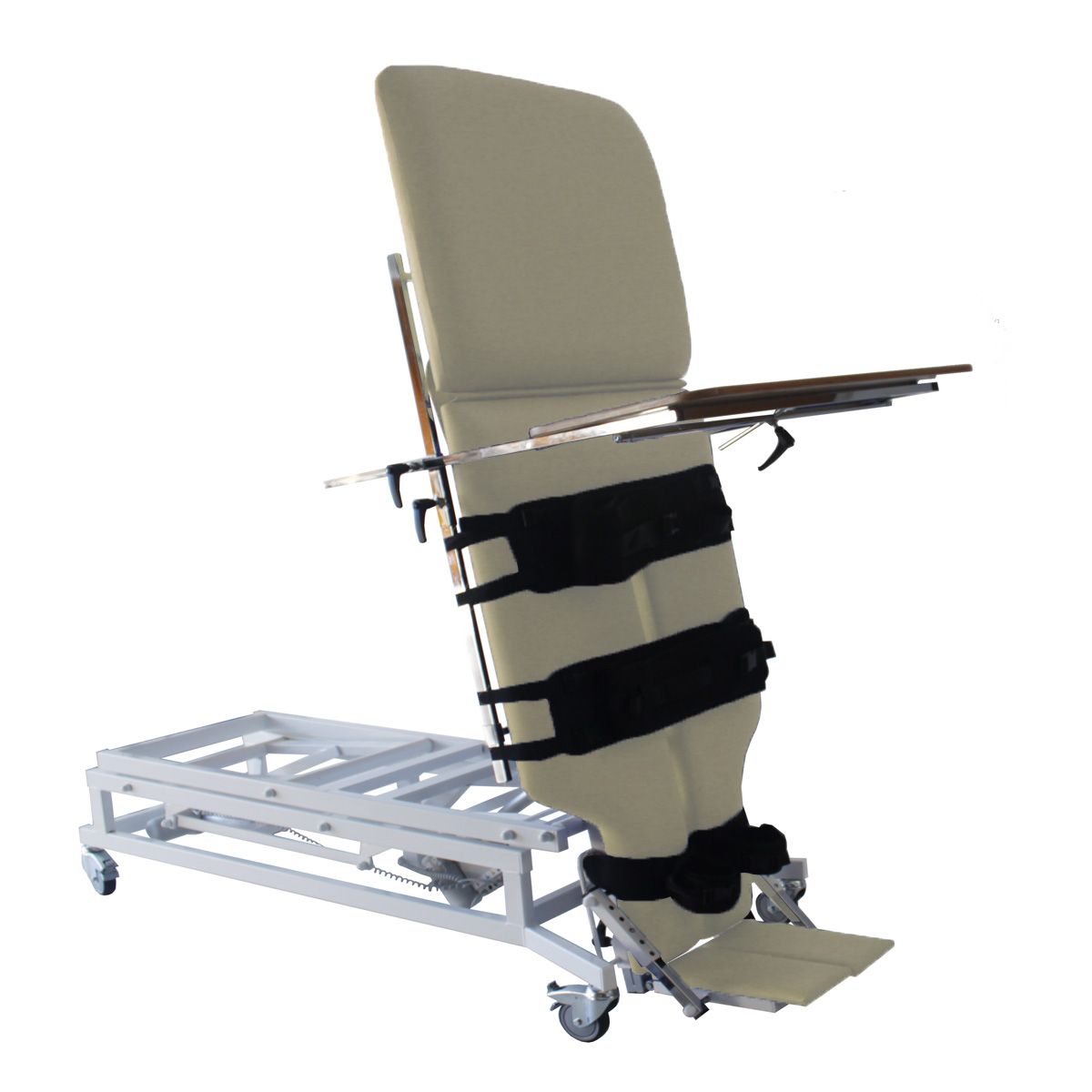 Table à hauteur réglable et plan verticalisateur inclinable par moteur.